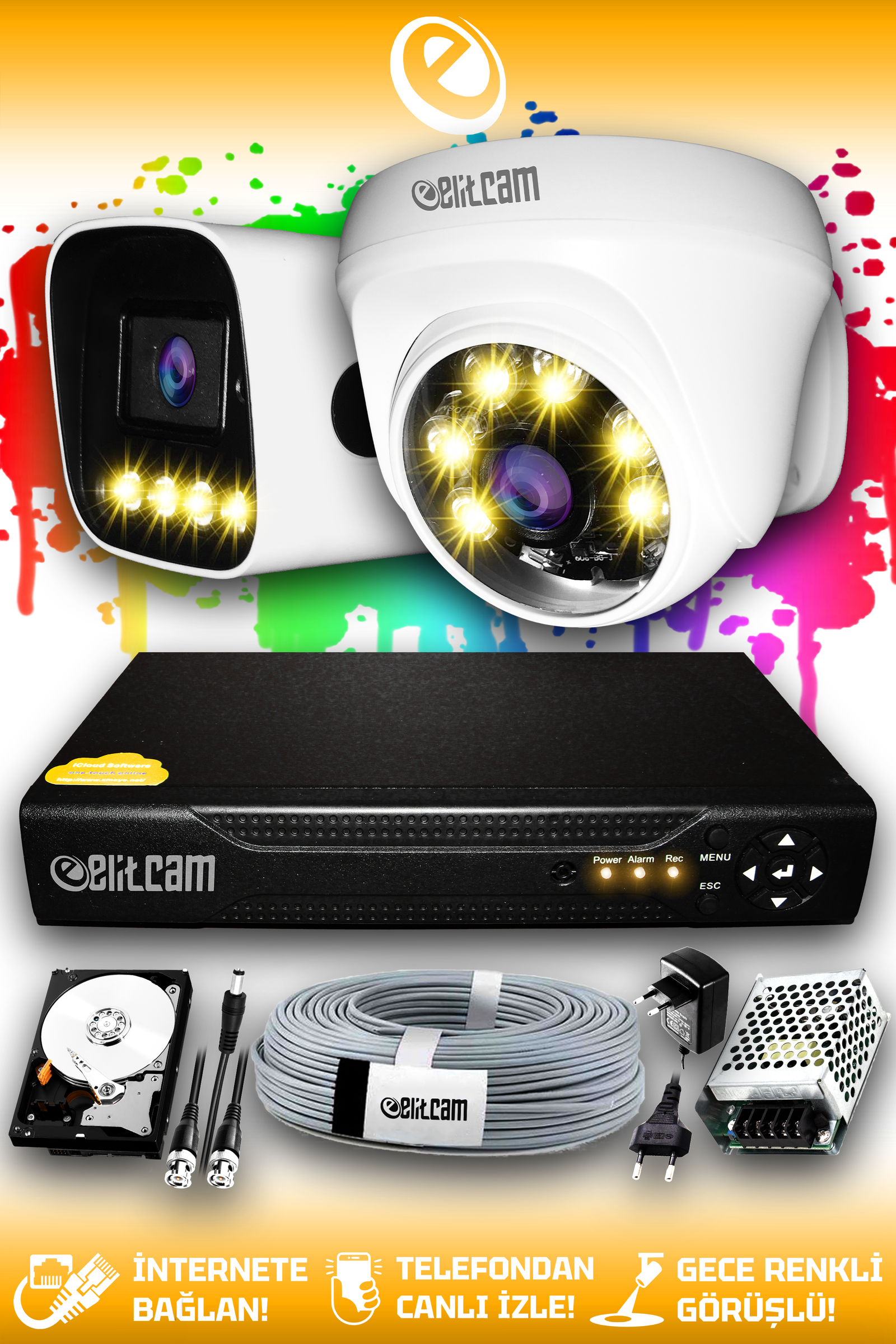 2 Kameralı Zebra 1 İç Kamera Set 500 GB HDD Full HD Renkli Gece Görüşlü Güvenlik Kamerası Sistemi