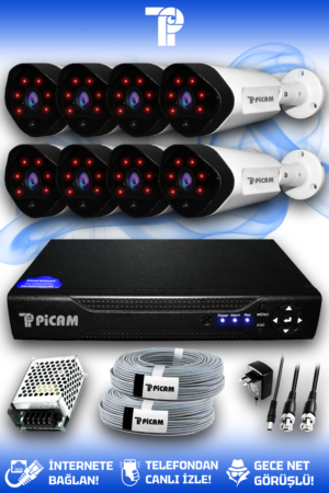 8 Kameralı Uzay 8 Dış Kamera Set 320 GB HDD Full HD Gece Görüşlü Güvenlik Kamerası Sistemi