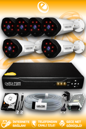 6 Kameralı Uzay 3 İç Kamera Set 100 GB HDD Full HD Gece Görüşlü Güvenlik Kamerası Sistemi