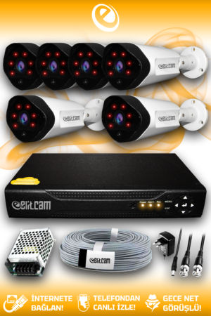 6 Kameralı Uzay 6 Dış Kamera Set HDD’siz Full HD Gece Görüşlü Güvenlik Kamerası Sistemi