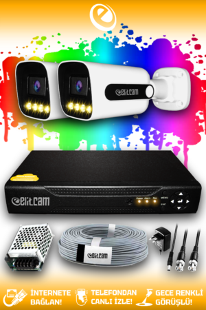 2 Kameralı Zebra 2 Dış Kamera Set 500 GB HDD Full HD Renkli Gece Görüşlü Güvenlik Kamerası Sistemi