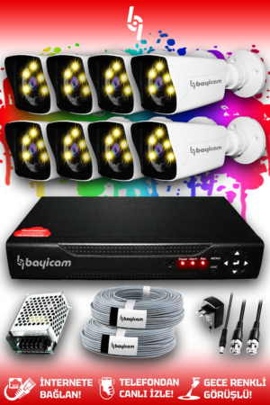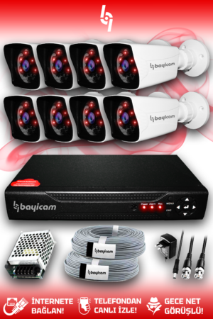 8 Full HD Kamera Kare Set HDD’siz 8 Dış Mekan Gece Görüşlü Güvenlik Sistemi