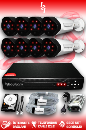 8 Kameralı Zebra 4 İç Kamera Set 500 GB HDD Full HD Renkli Gece Görüşlü Güvenlik Kamerası Sistemi