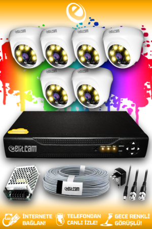 6 Kameralı Dome 6 İç Kamera Set HDD’siz Full HD Renkli Gece Görüşlü Güvenlik Kamerası Sistemi