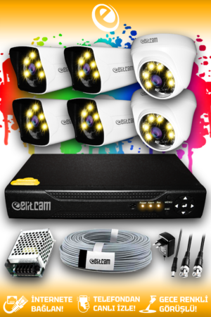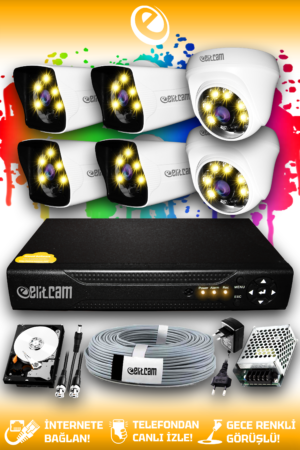 6 Kameralı Kare 2 İç Kamera Set 500 GB HDD Full HD Renkli Gece Görüşlü Güvenlik Kamerası Sistemi