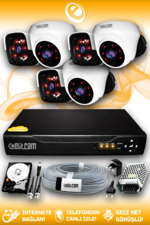 6 Kameralı Panda 2 İç Kamera Set 500 GB HDD Full HD Gece Görüşlü Güvenlik Kamerası Sistemi