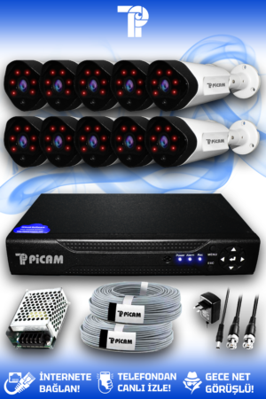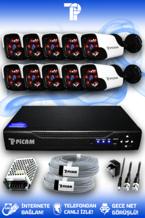 10 Kameralı Panda 10 Dış Kamera Set 2 TB HDD Full HD Gece Görüşlü Güvenlik Kamerası Sistemi